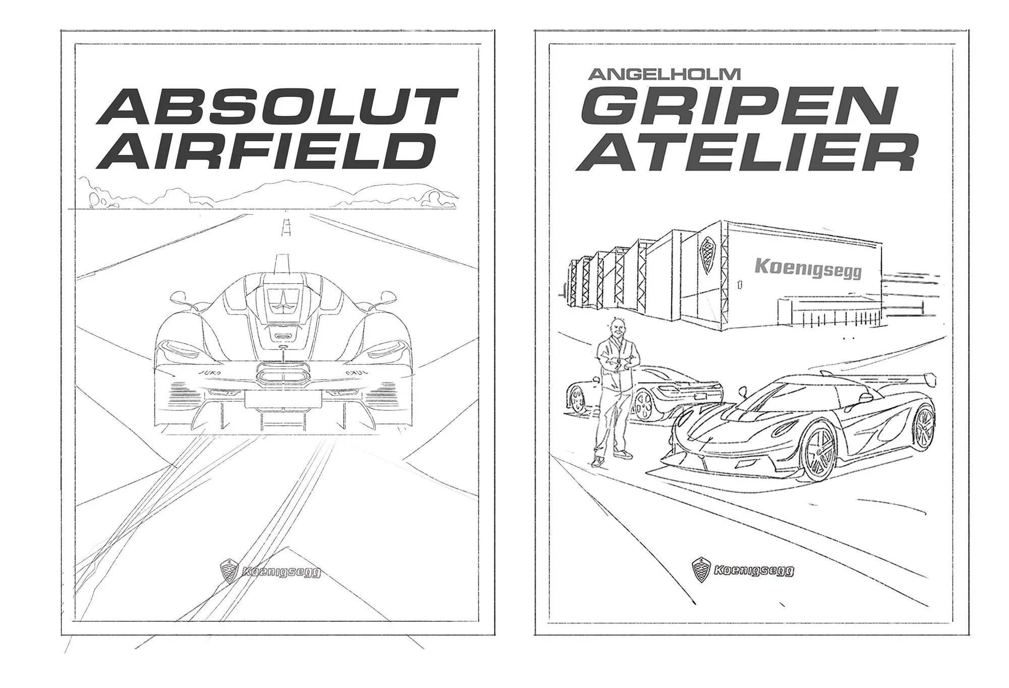 Each design combines 1920s and 1930s Art Deco with Swedish engineering: geometric forms, bold color palettes, and clean typography. Each design is limited to 100 prints, individually numbered and hand-stamped on the reverse. 10 prints per design are signed by Christian von Koenigsegg. Format: 50 x 70 cm on 300gsm fine art paper.